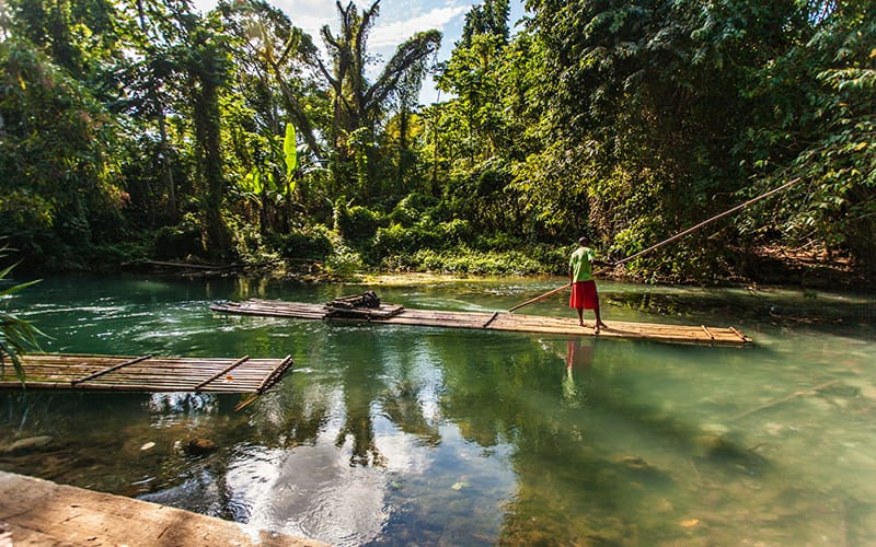 Book This TourJamaica's # 1 rafting attraction, was established 40 years ago. Licenced rafters will take on 30-foot-long bamboo rafts over a 3 mile stretch of the beautiful river, approximately 1-hour ride. During the ride visitors may learn about the "Legend of Martha Brae" or enjoy a swim. Before the raft ride, however, visitors may enjoy a stroll through Rafters' Village which offers a picnic ground, bar area, souvenir shops, a swimming pool and restrooms. Guests may also visit "Miss Martha's Herb Garden" which houses several Jamaican herbs famous for their medicinal and healing properties. After disembarkation from the raft at "Martha's Rest", visitors can walk through souvenir shops or enjoy the lounge area.