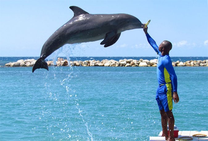 Dolphin Cove is Jamaica's number one marine attraction where visitors are sure to have an "Experience of a Lifetime". This magnificent property has a natural cove which is surrounded by 5 acres of lush, tropical raiforest.Visitors have the opportunity to interact and "Swim With" dolphins, enjoying the thrill and love of these amazing, loveable animals. Visitors can also swim with, hold, feed and learn about the evolutionary secrets of the Caribbean Sharks. Visitors can capture their dream of being a dolphin trainer by taking the challenge of being a "Sea Keeper" for the day.