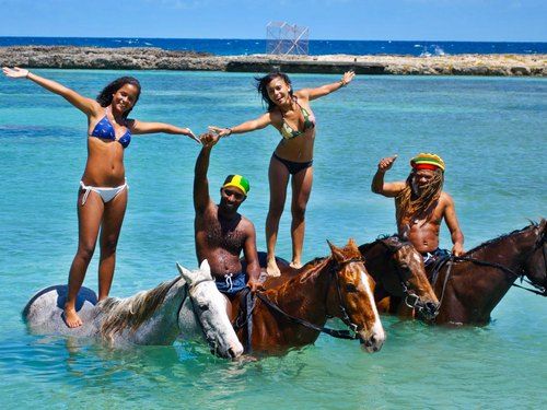 Jamaica Horseback Riding near Ocho Rios and in the OceanHorseback riding in paradise does not get any better than this. Experience the thrill of riding a beautiful horse through the countryside and down to a magnificent beach , where your dream of riding a horse into the sea becomes a reality. This Jamaica Horseback Riding adventure is ideal for couples, families and perfect for beginners. Your safety and security is well ensured by your professional guides. They will ensure you feel comfortable and confident at all times.