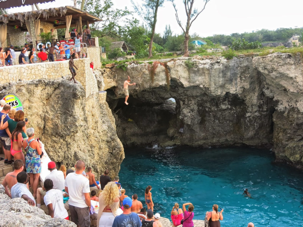 Rick's Cafe was the first public bar and restaurant of its type on the West End Cliffs, offering an alternative to Negril's Seven Miles Beach. From the beginning, Rick's Cafe boasted an unrivaled view of the sunset from its naturally formed cliffs. Over the years visitors and locals alike have have designated Rick's cafe as Negril's premier gathering spot and our sunsets have become a Jamaican tradition. In addition to the beautiful views, Rick's Cafe is fortunate to have one of the most incredible coves along the West End Cliffs. From our cliffs, countless visitors have jumped and dived into the crystaline water below. Our highest platform jump is 35 feet and ensures the thrill of a lifetime.