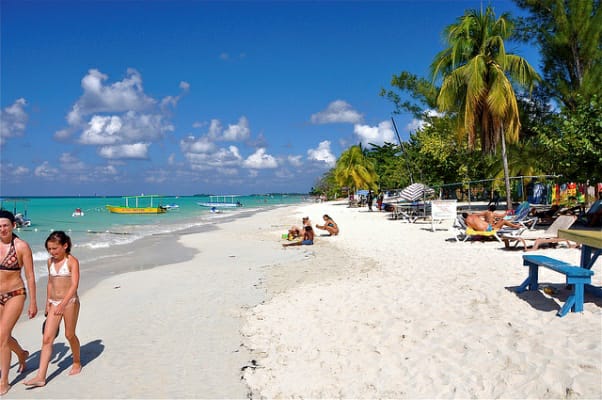 Beloved by the hippies of the 1960s, Seven Miles Beach is still as beautiful as ever, but is no longer the idyllic rereat it once was. Resorts now line this beach , attracting an international crowd. Nudity, hwever, is just as prevalent: This Negril beach promotes a laid back lifestyle and carefree ambience more than any other in Jamaica or, perhaps, in the Caribbean. Clean aquamarine waters, coral reefs and a backdrop of palm trees add to the appeal. When you tire of the beach you will find all sorts of resorts, clubs, beach bars, open-air restaurants and the like.
